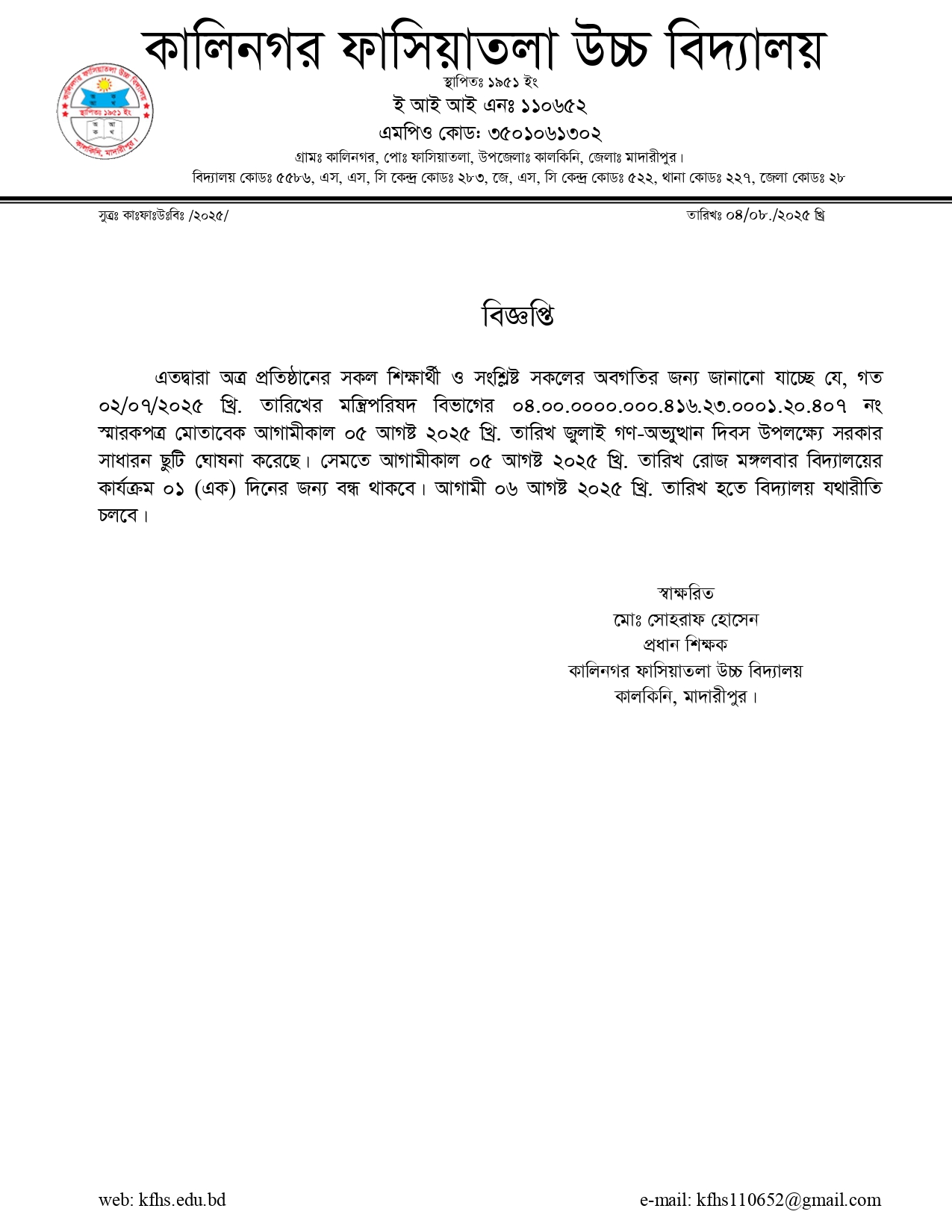 | বিদ্যালয় বন্ধের নোটিশ | 04-08-2025 | |